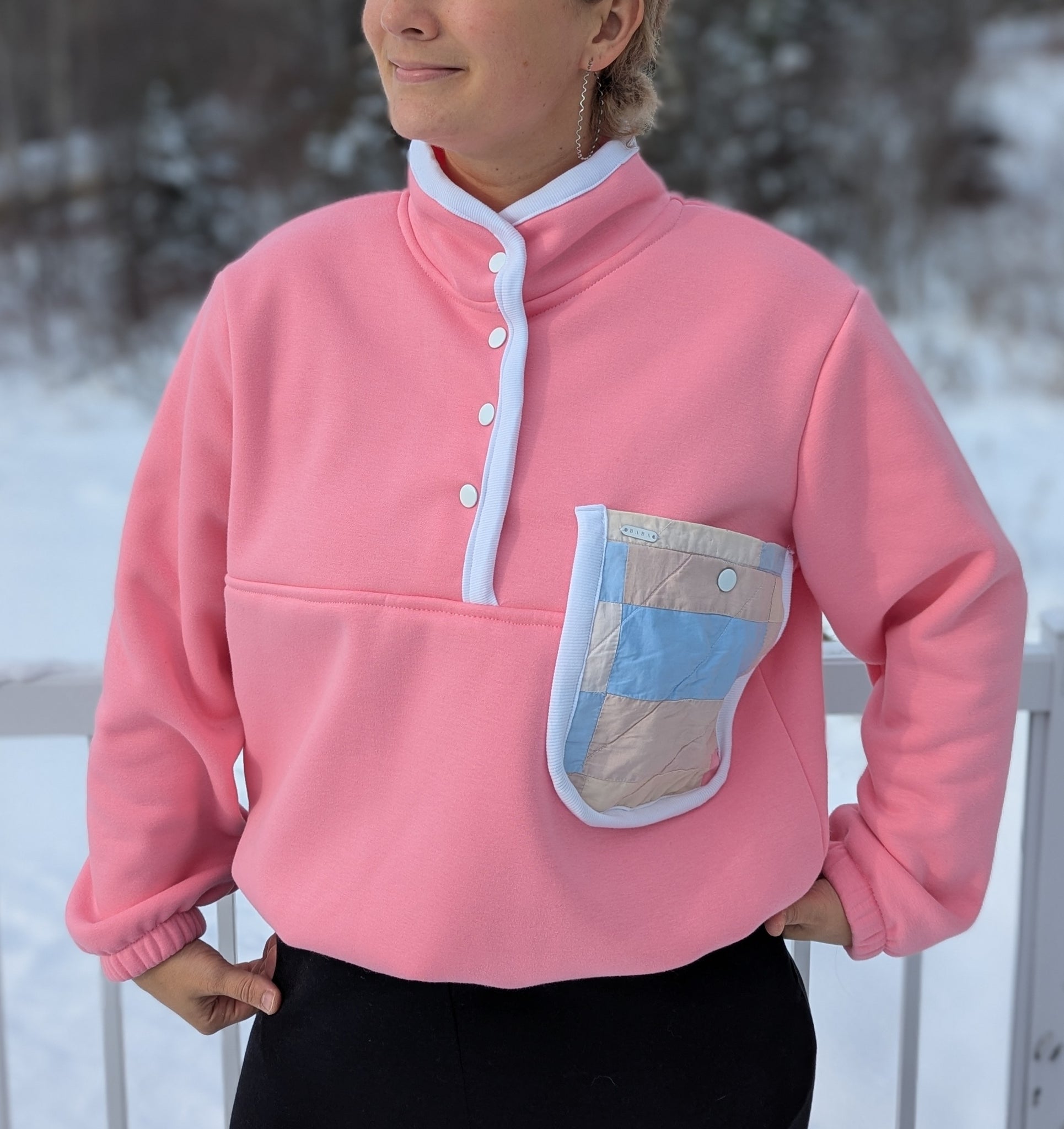 Poche en courte-pointe pastelle, boutons pression blancs