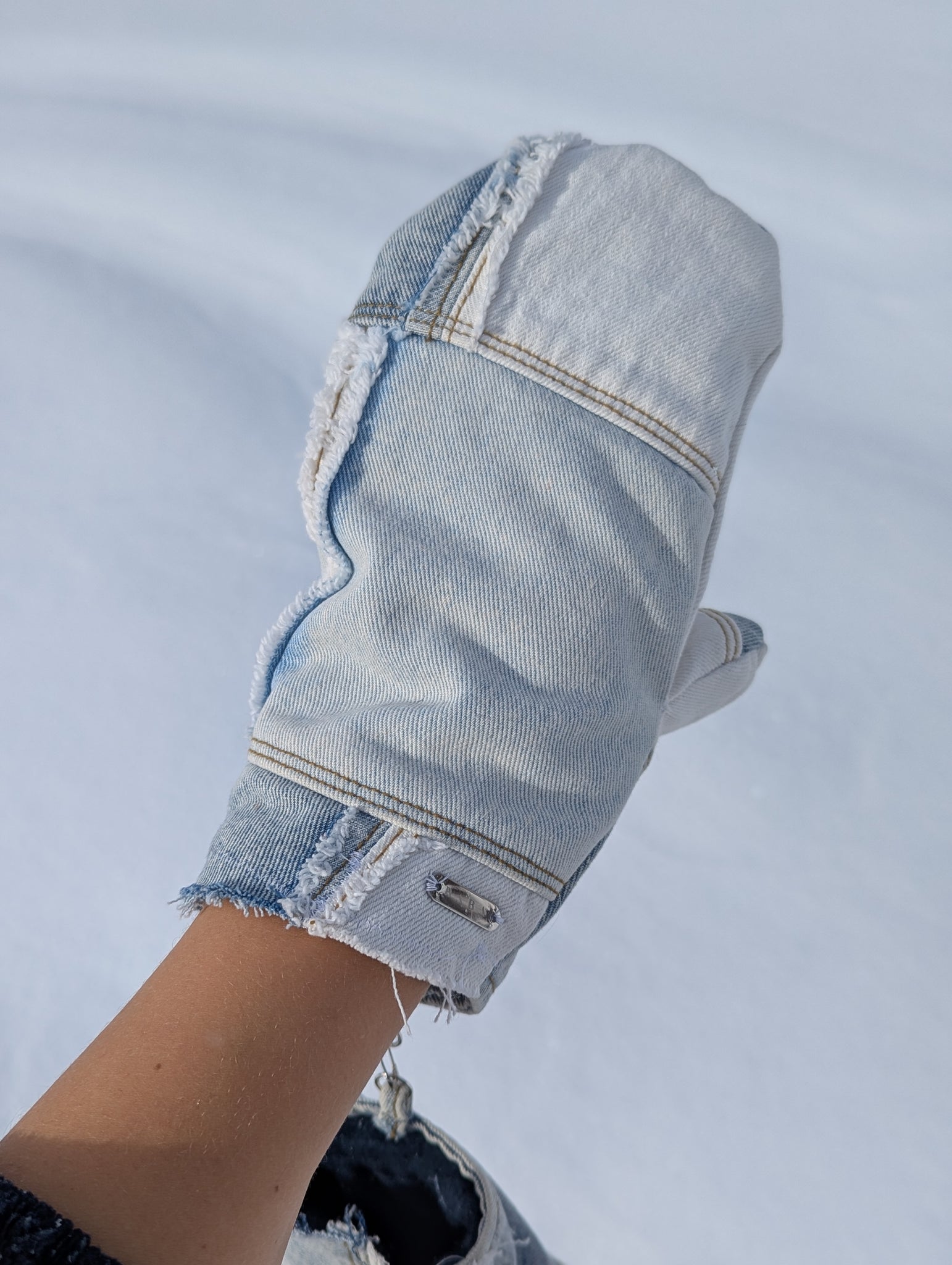 • Vous connaissez mon amour du denim & du patchwork...Je me devais de créer cette mitaine "edgy" très BABA