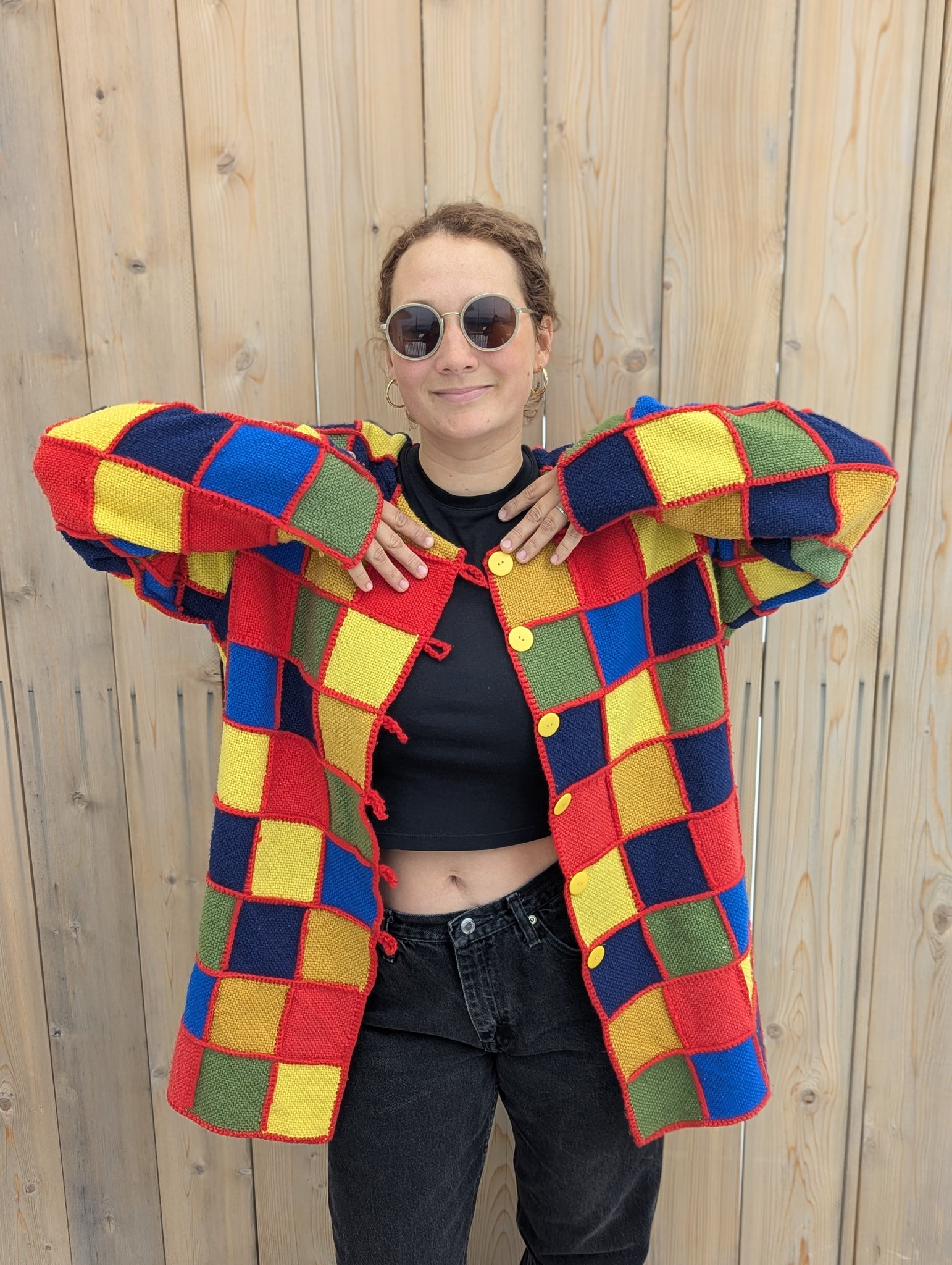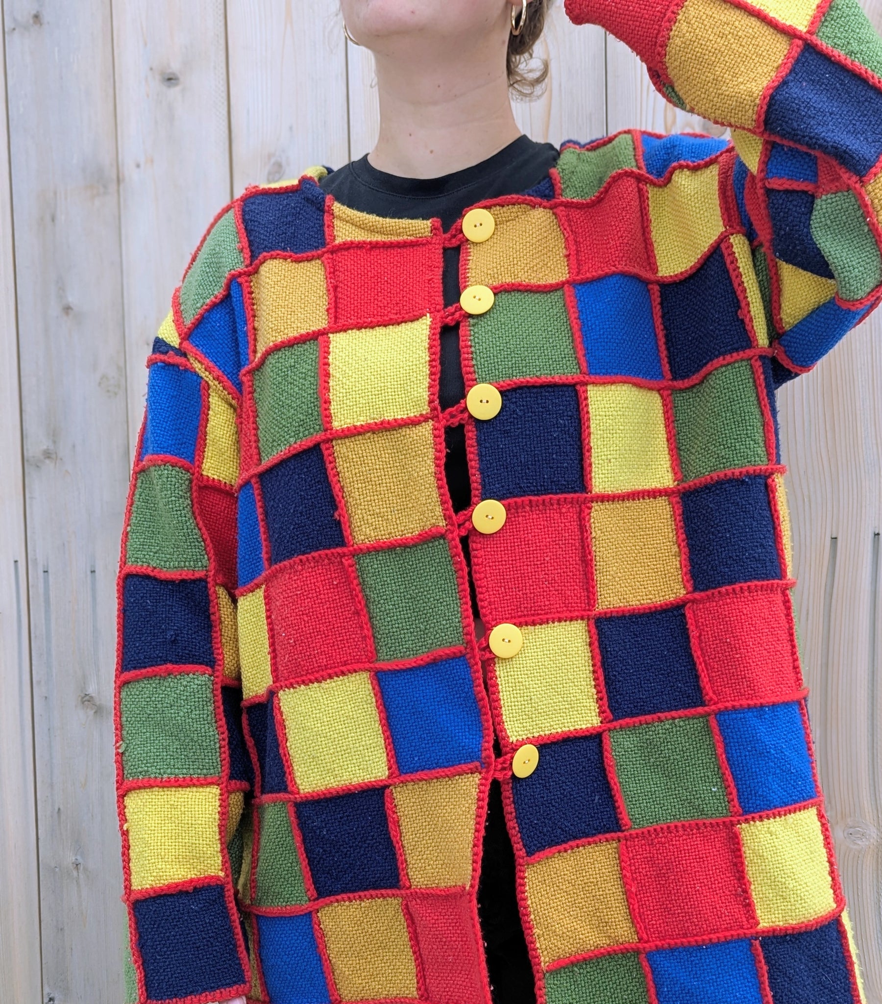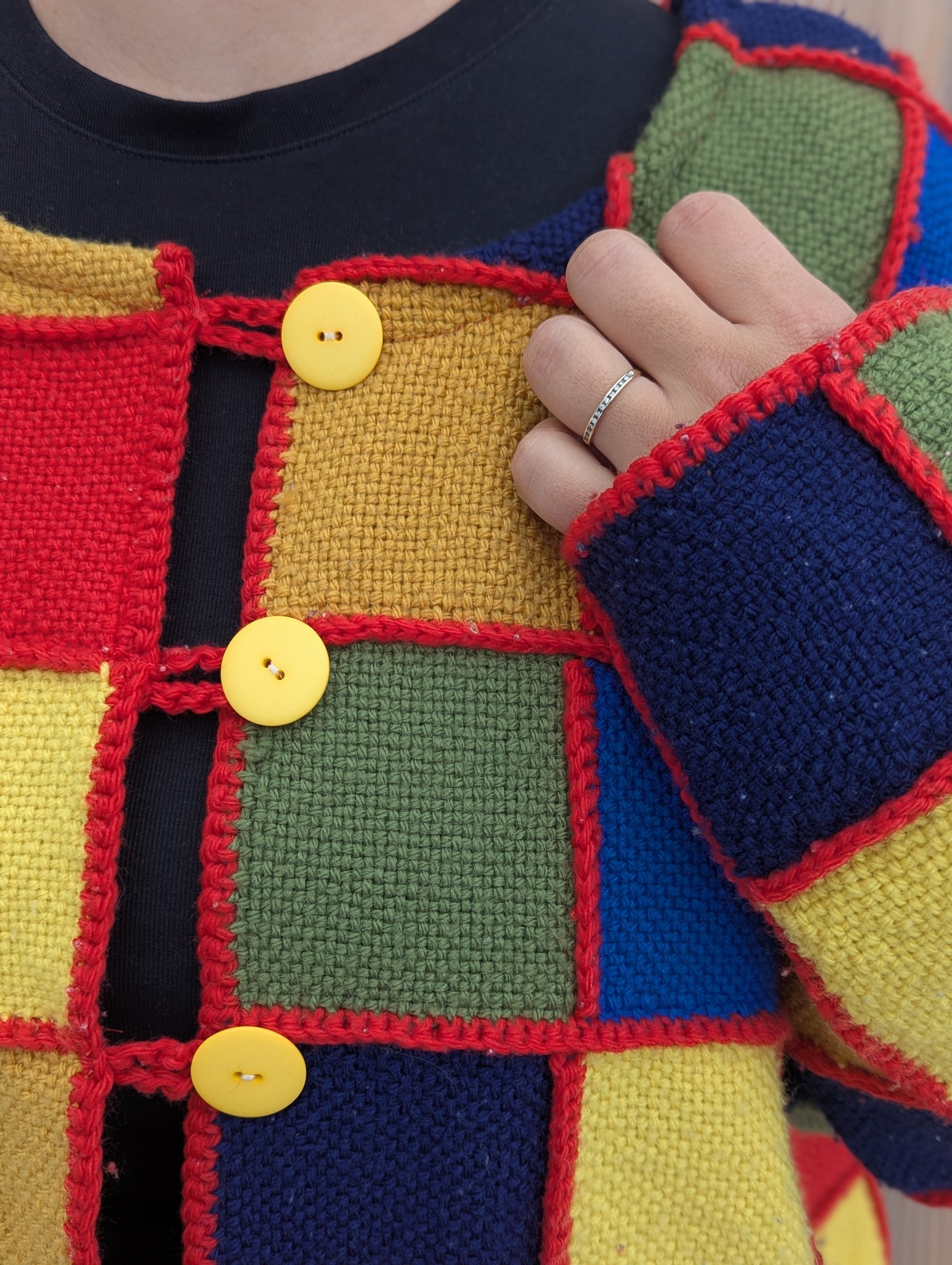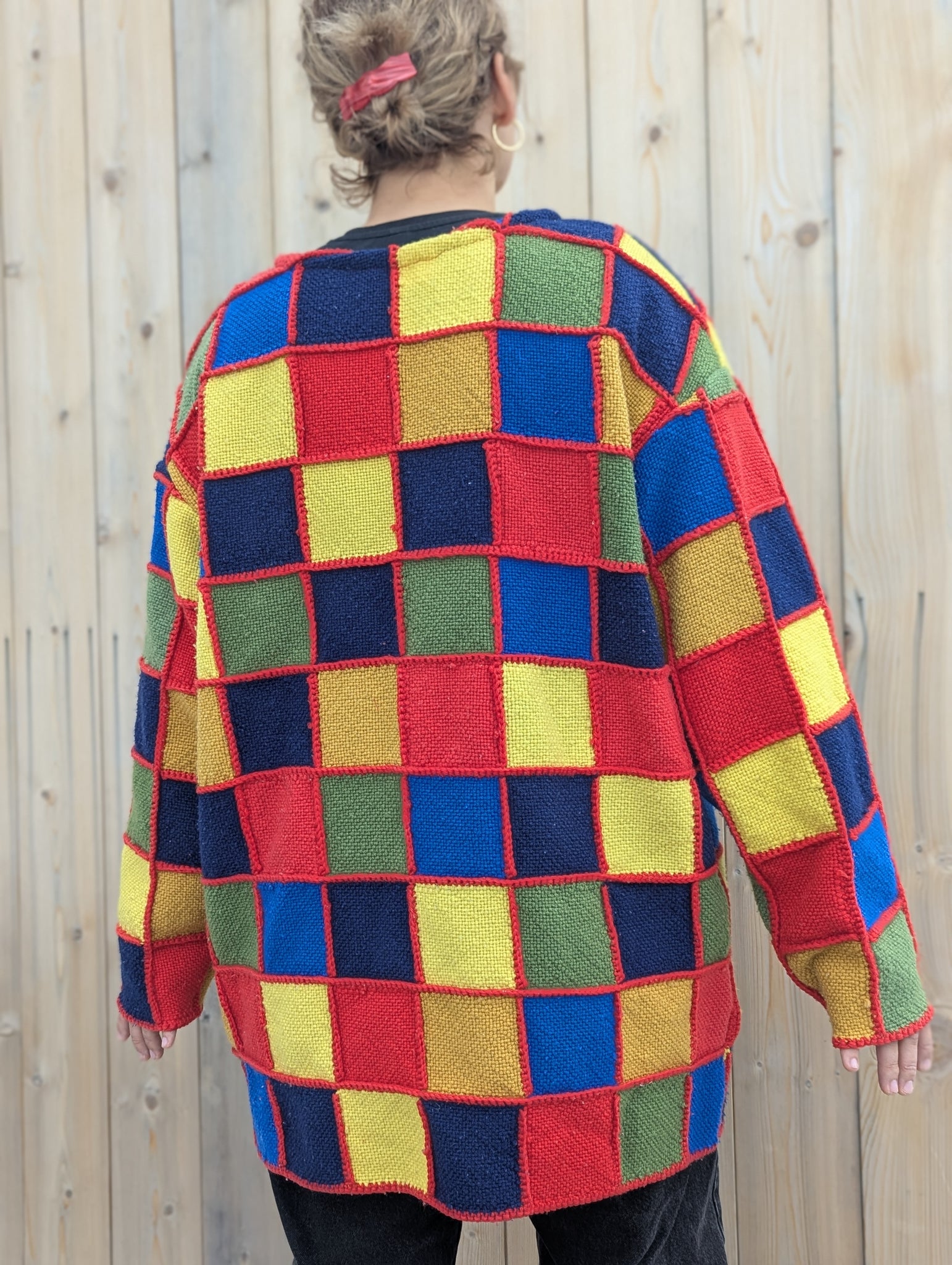 - Très grand cardigan damier, fabriqué à partir d'une couverture artisanale méticuleusement tricotée