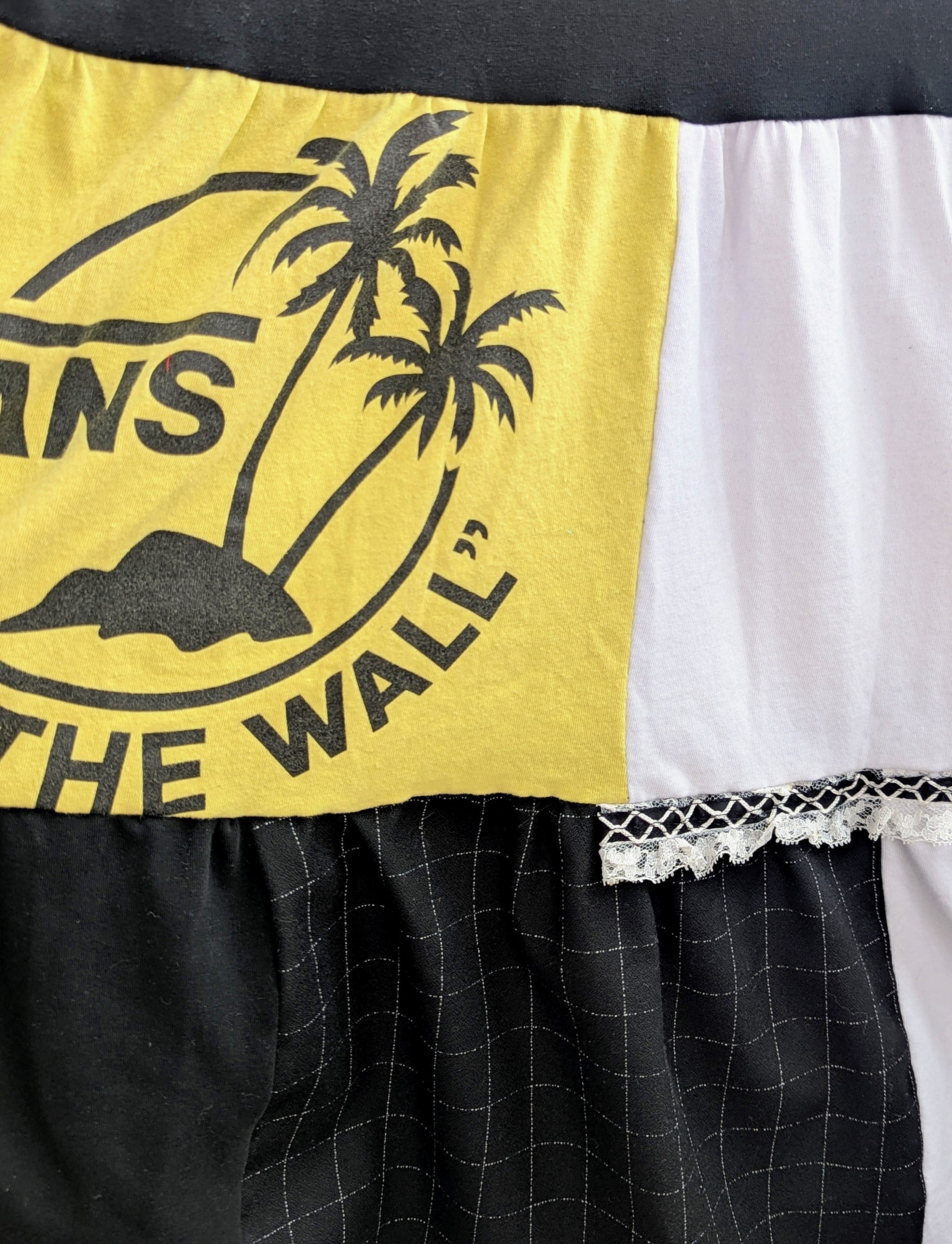 Assemblage de t-shirts « thriftés », tissus récupérés & dentelle vintage