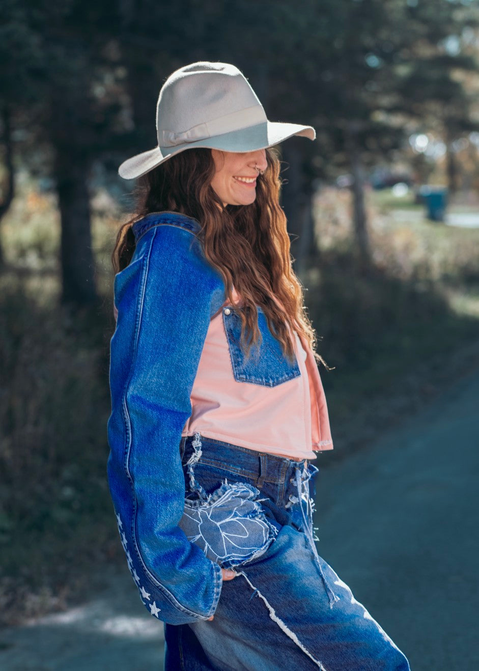 • La coupe est à la fois “street” et décontractée, la manche ultra longue et l'encolure honorent la paire de jeans Wrangler étoilée vintage qui fut upcyclée pour cette pièce
