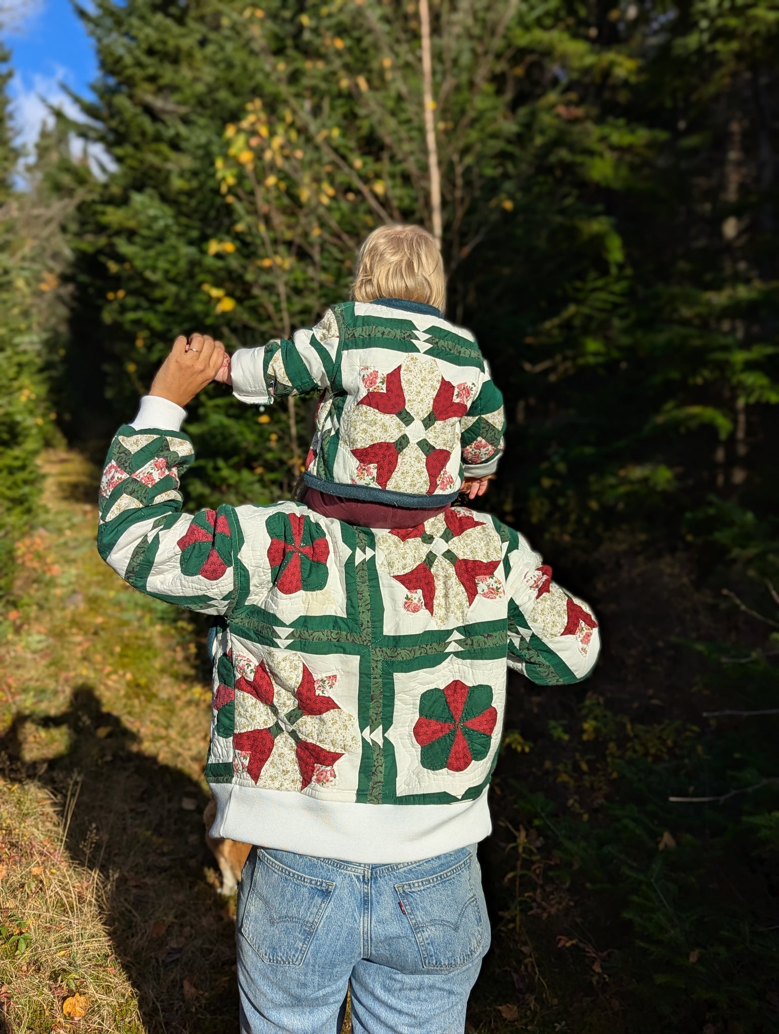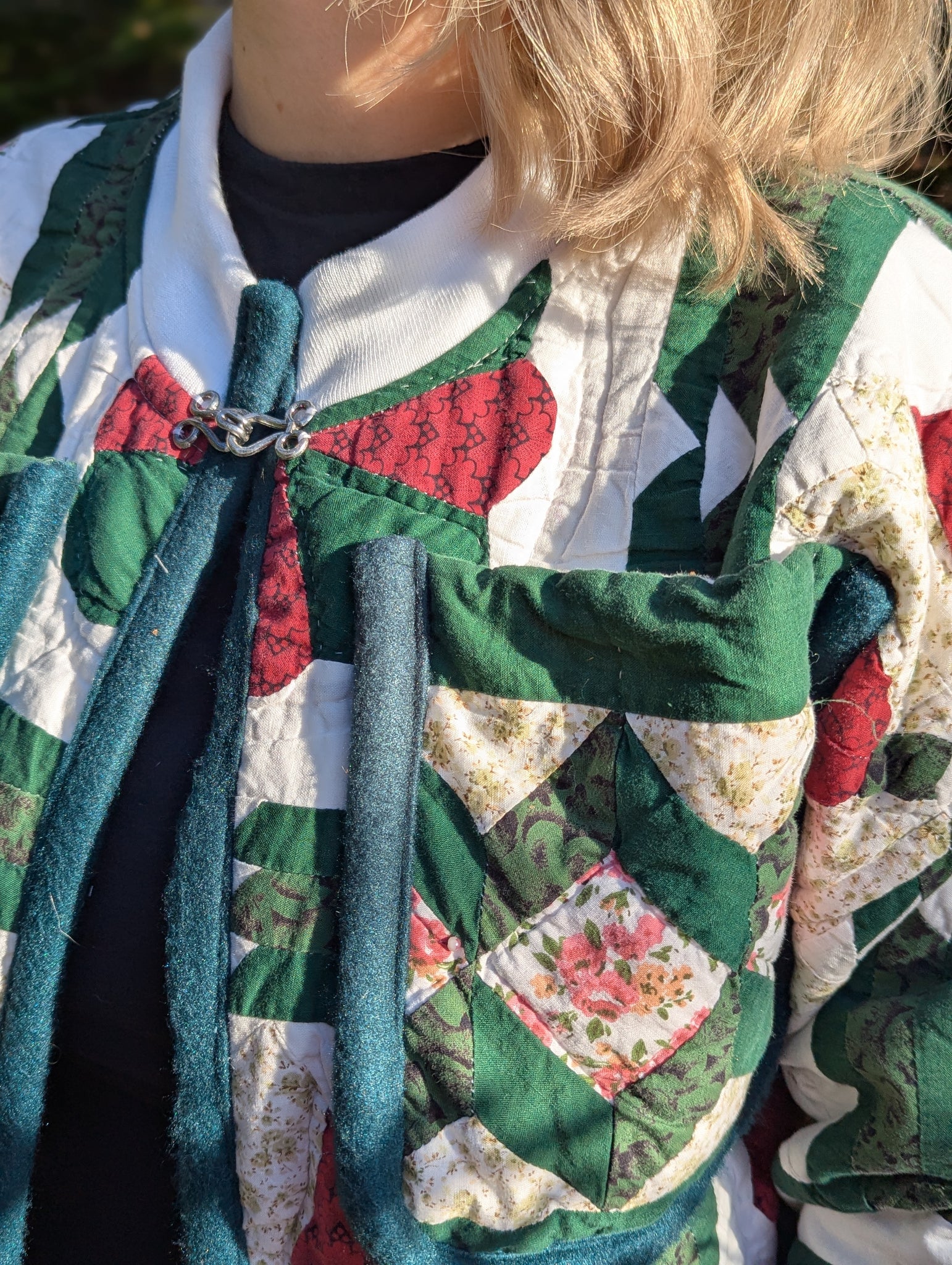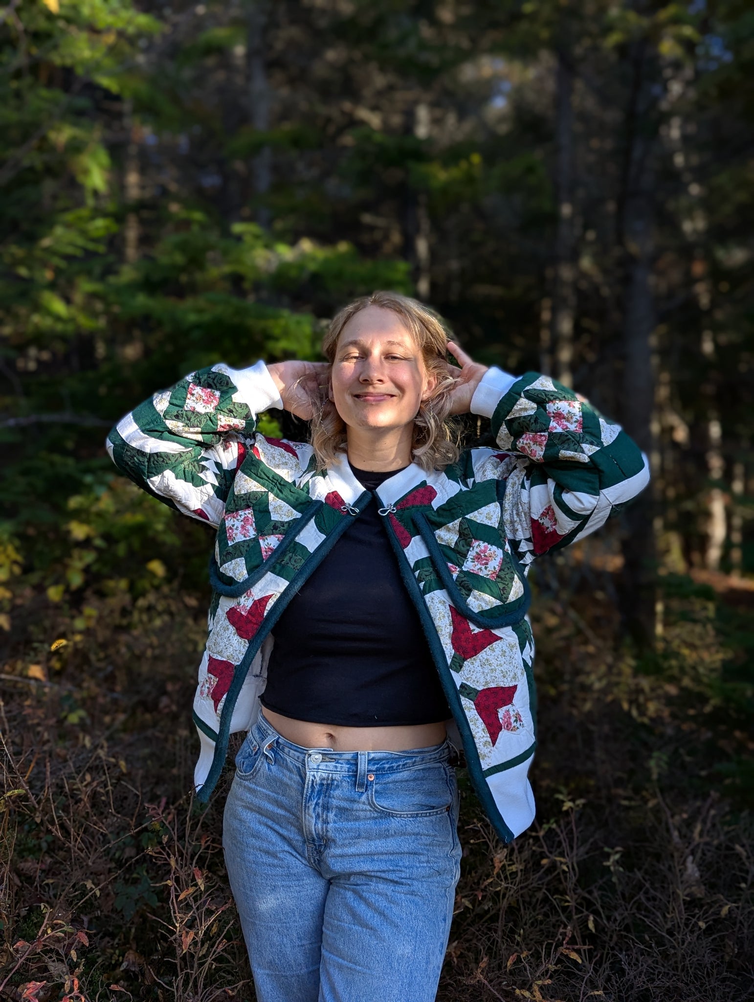 Courtepointe aux tons vert forêt et crème revalorisée