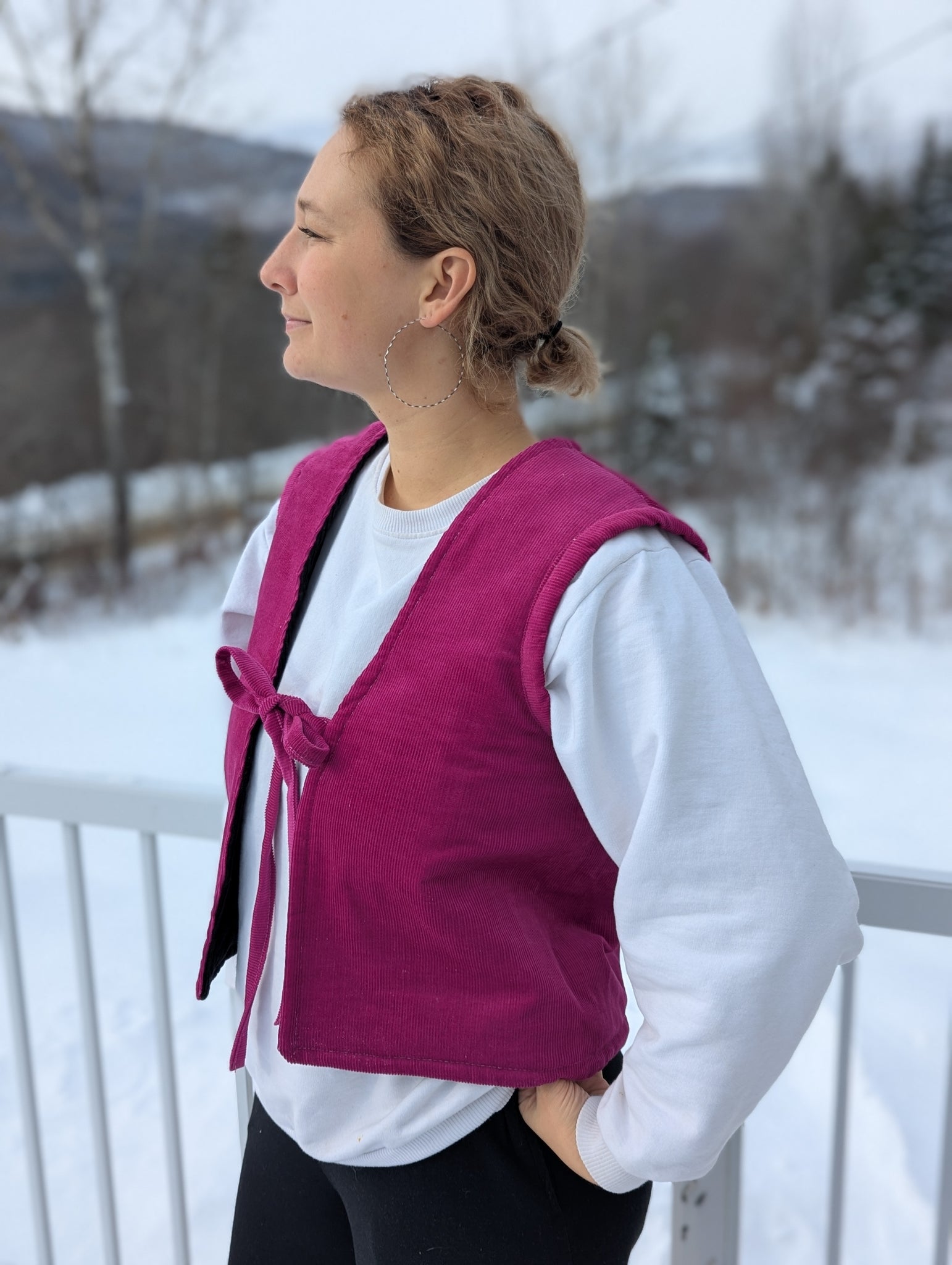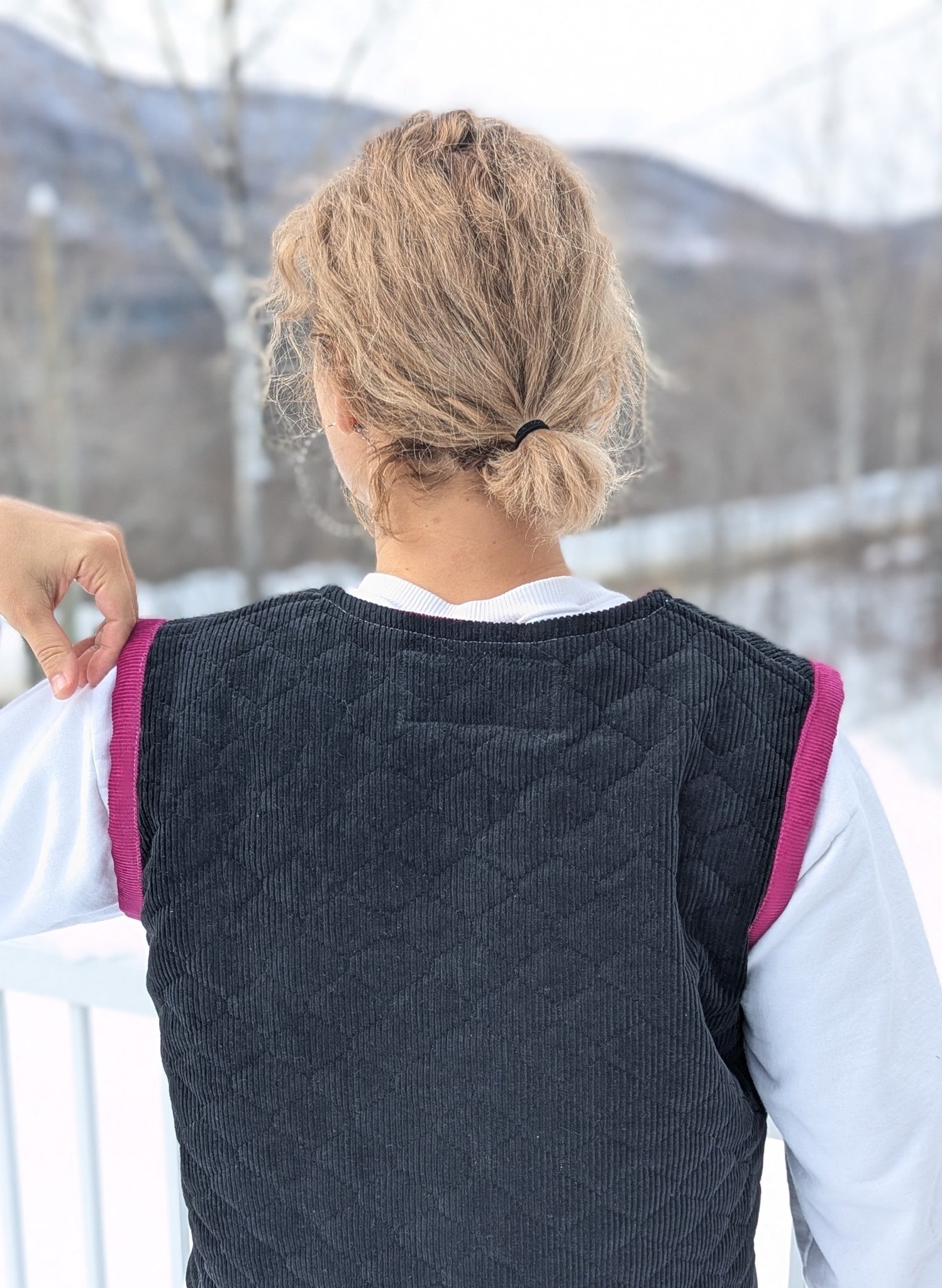 Veste matelassée noire d'un côté, rose style magenta de l'autre côté